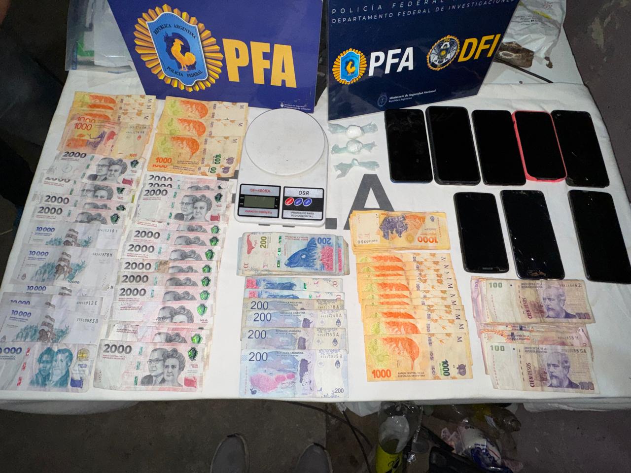 Asimismo, secuestraron varias dosis de cocaína, gran cantidad de plantas de Cannabis sativa, más de 600.000 pesos en efectivo producto de la venta de estupefacientes, 25 proyectiles calibre 9mm, un cargador de pistola, once teléfonos celulares, una tablet y documentación de interés.