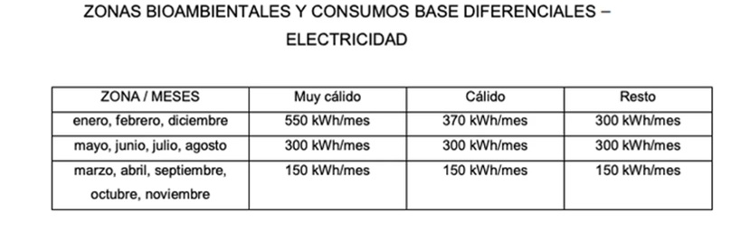 Sin embargo, la normativa contempla consumos base diferenciales para zonas cálidas y muy cálidas, con topes de hasta 370 kWh y 550 kWh respectivamente durante los meses de verano.