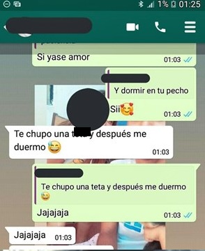 "Bueno, me voy a dormir… que sueñes conmigo, que te hago el amor y te lleno de besos", se puede leer en otro de los fragmentos que fueron difundidos y despertaron la alarma de la mujer, quien rápidamente denunció el caso y realizó capturas para que los mensajes no puedan ser eliminados.