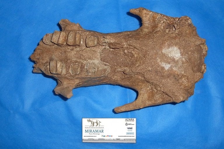 Según se informó, se produjo el hallazgo de un cráneo de megaterio de una antigüedad que supera los tres millones y medio de años, durante el Plioceno de la región pampeana.