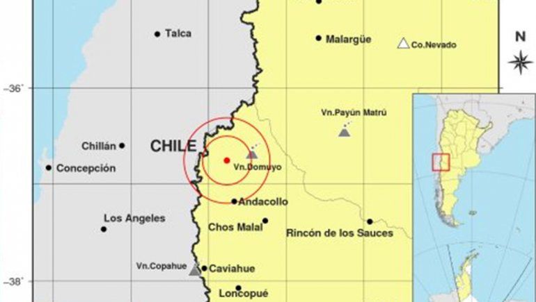 El informe indica que el movimiento telúrico ocurrió alrededor de las 6:23 de la mañana del sábado en un sector ubicado a 47 kilómetros al norte de Andacollo y 340 kilómetros al noroeste de Neuquén capital, en inmediaciones del volcán Domuyo.