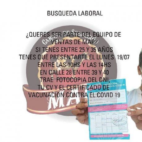 El comercio se llama MAP Carnes de Selección, cuyos encargados abrieron la búsqueda de personal para uno de sus locales, y está orientada a personas de entre 25 y 35 años, pero lo llamativo es que como requisito excluyente solicitan a los postulantes que lleven su certificado de vacunación contra el coronavirus.