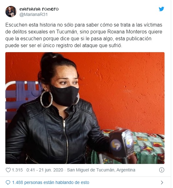 "El viernes volví a ir a esa comisaría porque era obvio que nadie iba a hacer nada -dice la joven-. Pedí la constancia de mi denuncia pero el policía, que era otro, me dijo que no estaba el que hacía las constancias. Yo le estaba pidiendo una copia de mi denuncia". Sin poder radicar la denuncia, sin orden de restricción para los tres policías involucrados y sin una custodia, por ser víctima y denunciar públicamente el ser violada, Roxana sigue sin tener noticias de la Justicia.