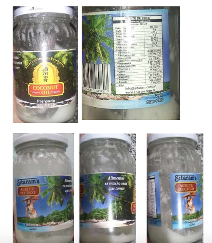 El artículo primero de la Disposición oficial marca: "Que en las actuaciones citadas en el VISTO el Departamento Vigilancia Sanitaria y Nutricional de los Alimentos del Instituto Nacional de Alimentos (INAL) recibió un reclamo de un consumidor con relación a la comercialización del producto: Aceite de coco, marca Sitaram´s, Coconut Oil Virgen Organic, Prensado en frío, Sitaram Indian Products, Contenido Neto 360cc, Venc. Mayo 2023, que no cumplirían con la normativa alimentaria vigente".