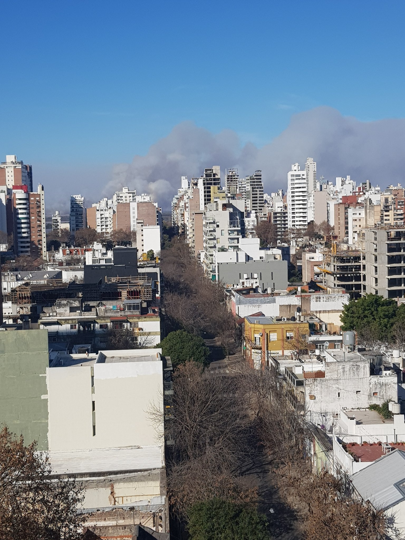 La densidad del humo por los focos de incendio que afectó a Rosario era tal que el manto gris podía apreciarse inclusive desde localidades de la región, como fue el caso Zavalla, a más de 25 kilómetros del centro de la ciudad.