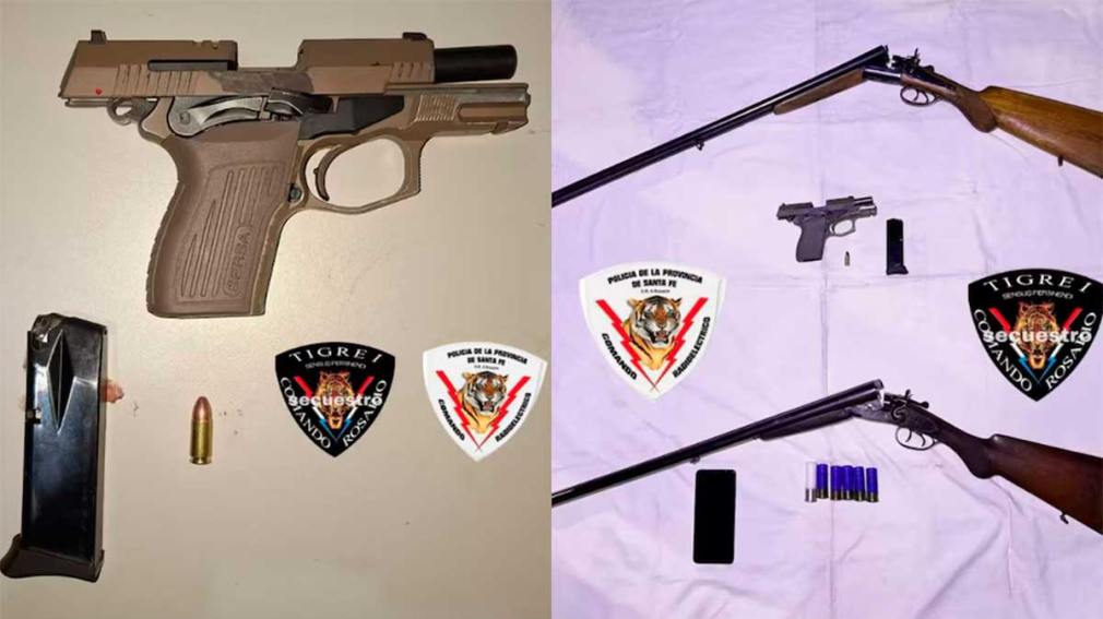 El despliegue policial derivó en un allanamiento en San Cayetano y Cabal, donde uno de los sospechosos intentó descartar una motocicleta Bajaj Dominar 250cc, que tenía pedido de secuestro. La persecución concluyó en una vivienda de pasillo, donde resultaron detenidos Aníbal Jorge B. (51), Emanuel Mauricio A. (22), Abigail Ludmila B. (20) y Dylan Maximiliano P. (16). En ese domicilio, los agentes encontraron una pistola calibre 9 milímetros, compatible con el arma utilizada en el ataque. Además, secuestraron dos escopetas, una calibre 16 y otra calibre 12.