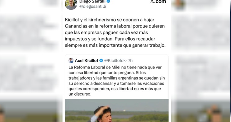"Kicillof y el kirchnerismo se oponen a bajar Ganancias en la reforma laboral porque quieren que las empresas paguen cada vez más impuestos y se fundan. Para ellos recaudar siempre es más importante que generar trabajo", se quejó el funcionario en su cuenta de X, constató la Agencia Noticias Argentinas.