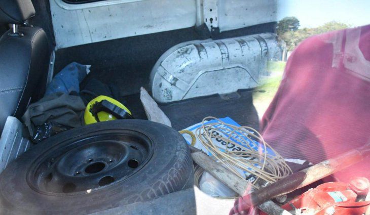 Dentro de la camioneta de los ladrones se encontraron precintos, artículos de telefonía y varias herramientas.