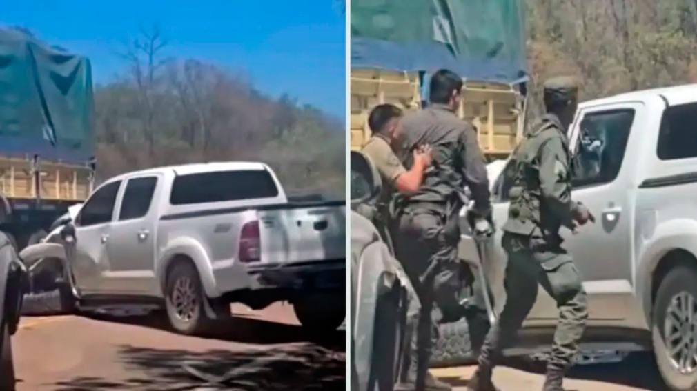 Testigos registraron en video el momento posterior al choque, donde se observa a varios gendarmes visiblemente enojados, golpeando las puertas de la camioneta para que el conductor saliera. “¡Hacelo bajar!”, gritaba uno de los efectivos mientras otros intentaban abrir a la fuerza la puerta delantera, que habría quedado trabada por el impacto. Incluso golpearon las ventanillas traseras en un intento por ingresar al vehículo.