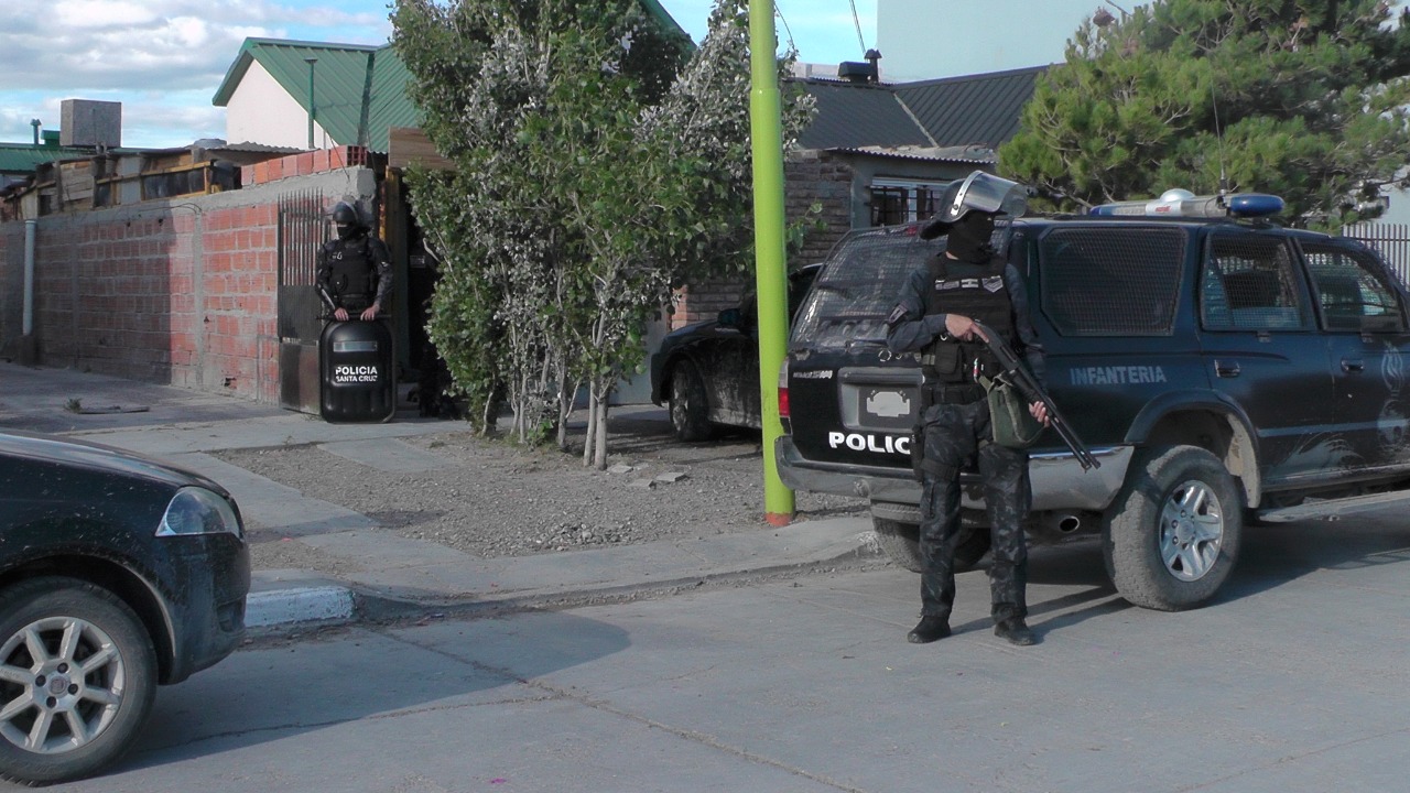 Hoy a las 18:00 hs. y conforme órdenes de allanamientos dispuestas por la Justicia Federal, personal de la División de Investigaciones Las Heras y en forma conjunta con efectivos de la DDI Perito Moreno, Fuerzas especiales de zona norte y grupo ECOM de Pico Truncado, todos integrantes de la policía de la provincia de Santa Cruz, se allanaron dos propiedades.