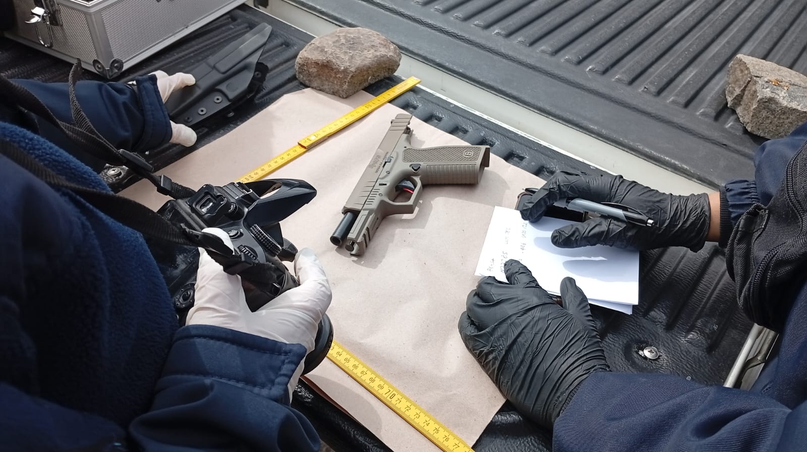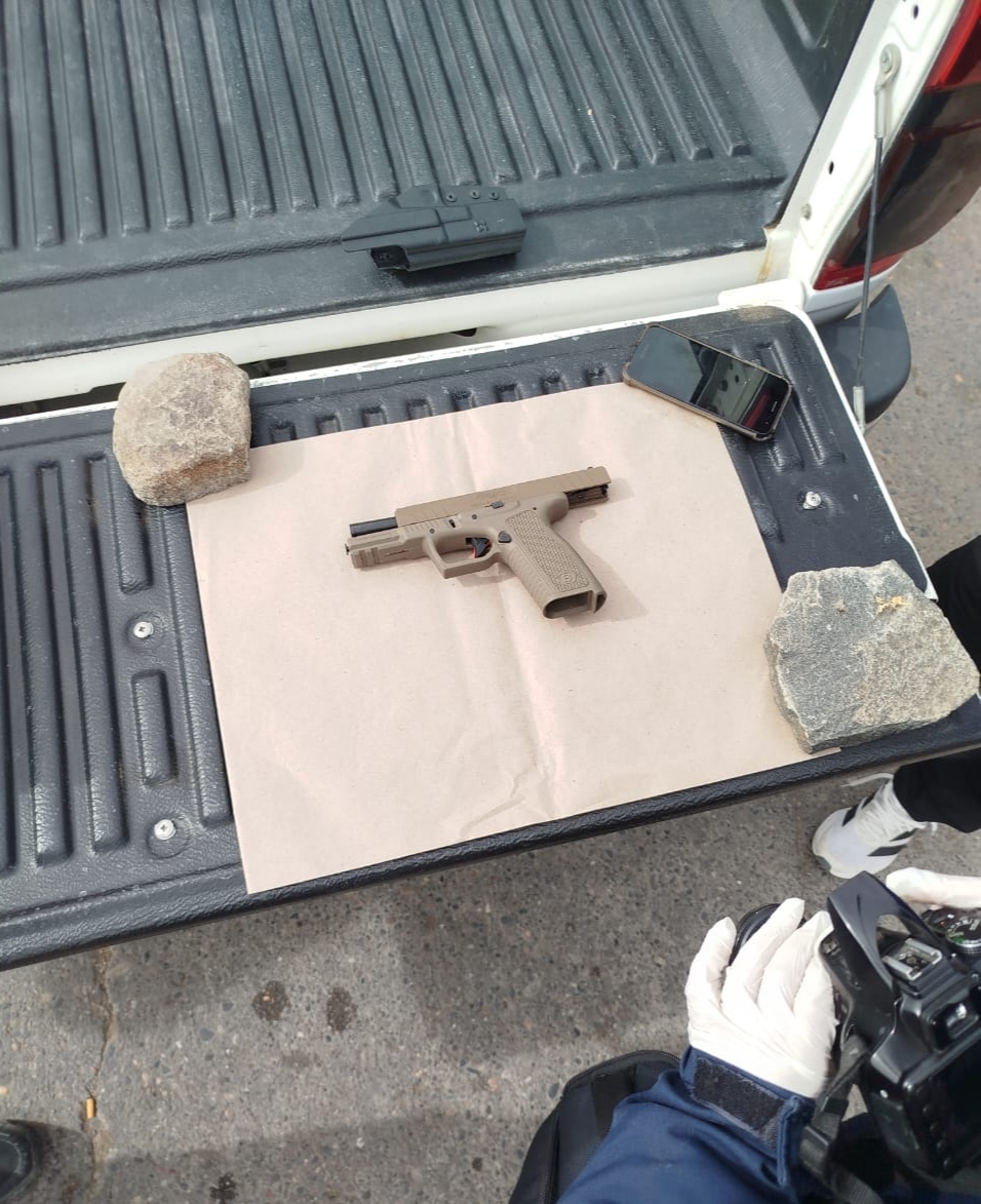 Por disposición judicial, los tres ocupantes fueron aprehendidos en carácter de incomunicados. Durante la requisa del vehículo se secuestró una pistola Bersa calibre 9 mm con su cargador y 15 cartuchos, una vaina servida, un cuchillo con su vaina, prendas de vestir y la camioneta utilizada.