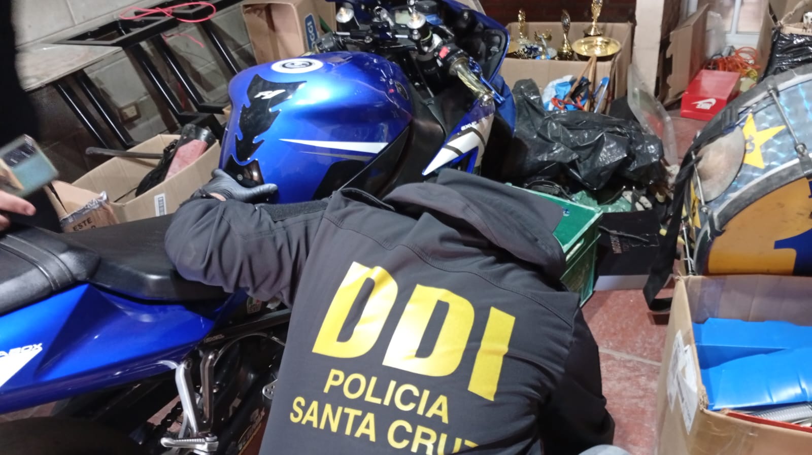 Durante una de las diligencias, además, se constató la presencia de una motocicleta Yamaha R1 de 1000 cc, con dominio apócrifo y signos de adulteración en la numeración del motor.