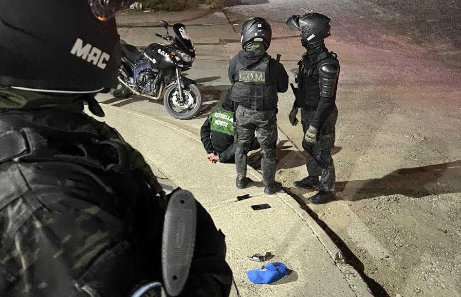 En el marco de tareas preventivas, personal del Grupo de Operaciones Motorizadas (GOM) intervino durante la noche en la intersección de las calles Bajo Caracoles y Beltrán, en la ciudad de Caleta Olivia.