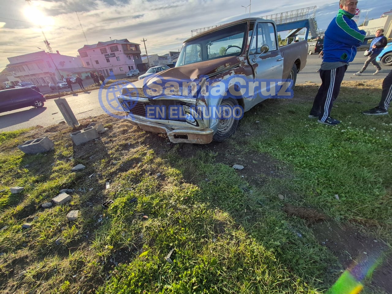 Como consecuencia, el vehículo impactó contra un montículo de tierra que protegía un dispositivo de riego perteneciente a la Municipalidad de Río Gallegos. El sistema resultó dañado y quedó fuera de funcionamiento tras el choque.