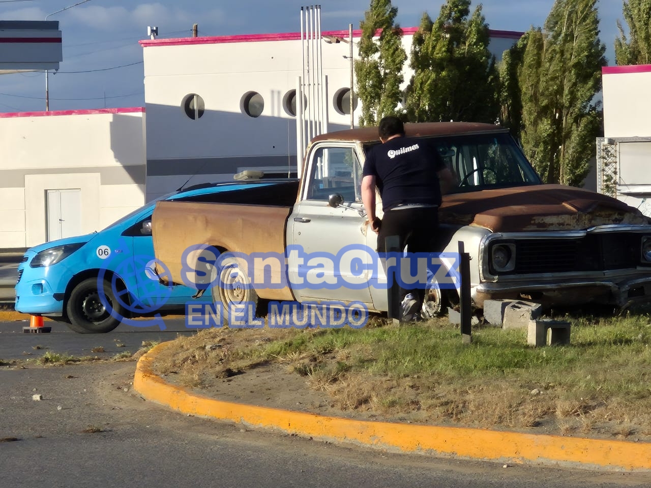 Un accidente de tránsito se registró este jueves alrededor de las 19:40 en la rotonda de la avenida Eva Perón, frente a la Terminal de Ómnibus de Río Gallegos, sobre la Autovía 17 de Octubre.