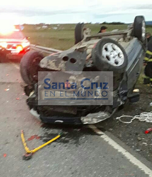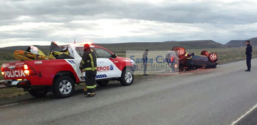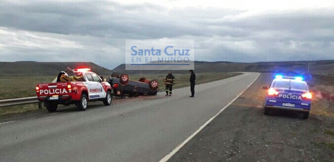 El pasado domingo en horas de la madrugada un vehículo volcó de camino a Rospentek. Las actuaciones estuvieron a cargo del personal de la División Comisaría de 28 de Noviembre, provincia de Santa Cruz.