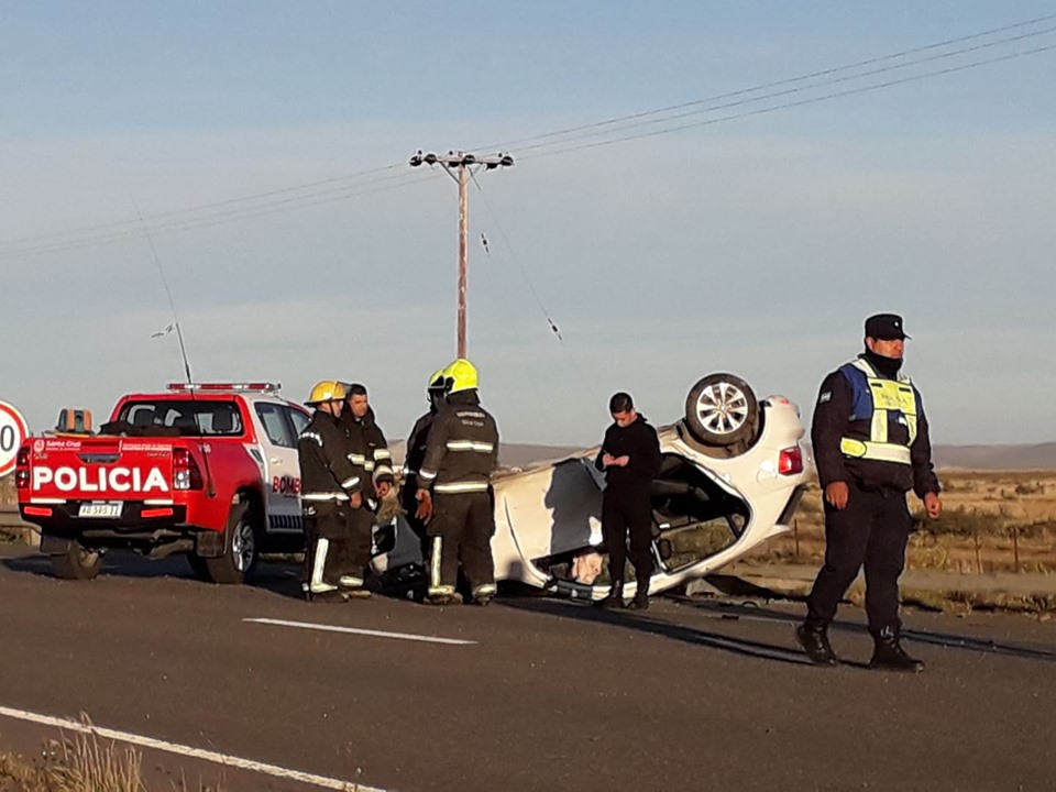 Minutos antes de las 07:00 horas de hoy se produjo un vuelco en cercanías de la entrada de Fuerza Área. Las actuaciones fueron llevadas a cabo por personal de la División Comisaría Sexta de Río Gallegos, capital de la provincia de Santa Cruz.