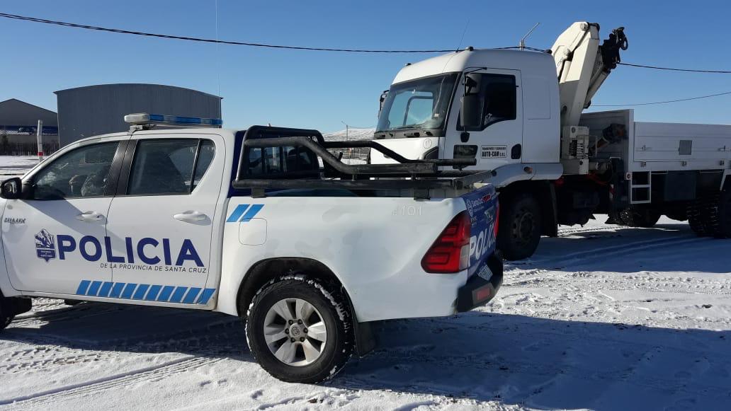 Alrededor de las 11:20 horas en circunstancias que los efectivos del GEOR realizaban patrullaje por RP 16 y 18 interceptaron un camión marca Ford Cargo, pte. NPX-327, perteneciente a la empresa Auto Cam, que circulaba por RP 26 desde Chubut, retomando camino alternativo a zona denominada Los Perales, en Santa Cruz, procediéndose a la identificación del conductor, resultando ser oriundo de la ciudad de Comodoro Rivadavia. La unidad se dirigía a cargar material a zona antes mencionada.