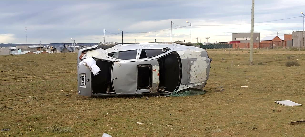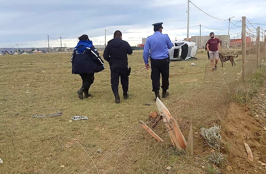 Un auto quedó atravesado en el descampado de una chacra y su conductor derivado a la guardia del Hospital Regional Río Gallegos volcado latermente. Las actuaciones estuvieron a cargo del personal de la División Comisaría Segunda de la ciudad capital, de la provincia de Santa Cruz.