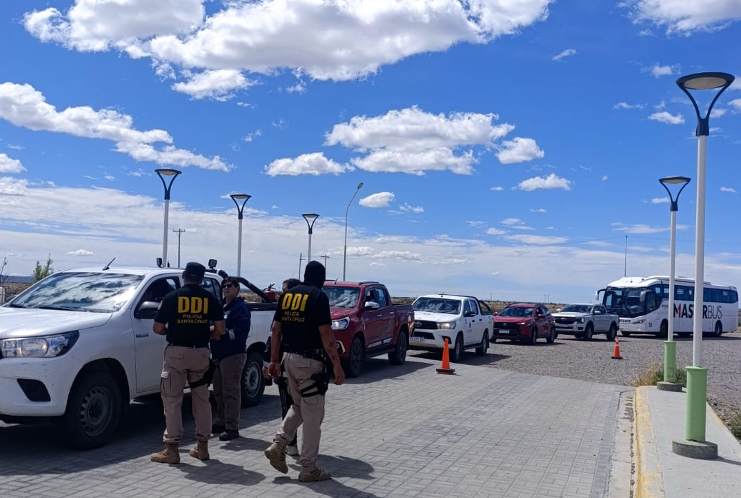 El procedimiento que, se desarrlló este viernes 21 de noviembre, comenzó a las 11:00 horas en el cruce de la Ruta Provincial N.° 43, bajo la coordinación de la División Narcocriminalidad Zona Norte, y contó con la participación de Gendarmería Nacional (Perito Moreno), DDI Las Heras, Sección Canes de Pico Truncado y personal de Transporte Provincial.