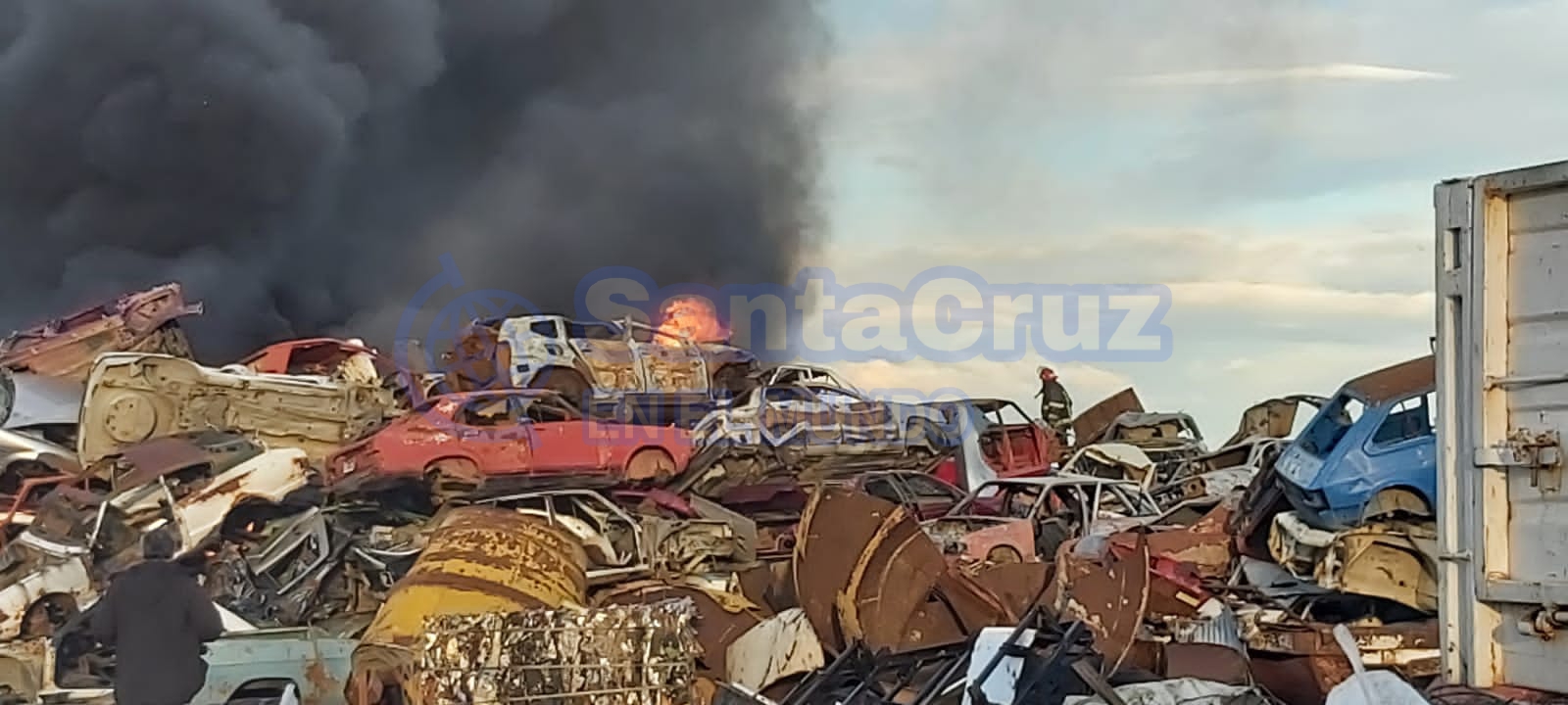 También al ser consultado sobre el siniestro indicó que "esto se inició en la zona de chatarra, la cual tiene ahora bastante acumulación ya que el día lunes llega la máquina de prensado, pero no sabemos cómo se inici{o el siniestro. Nosotros una vez que se finalicen las tareas de sofocación vamos a revisar las cámaras para obtener respuestas concretas".
