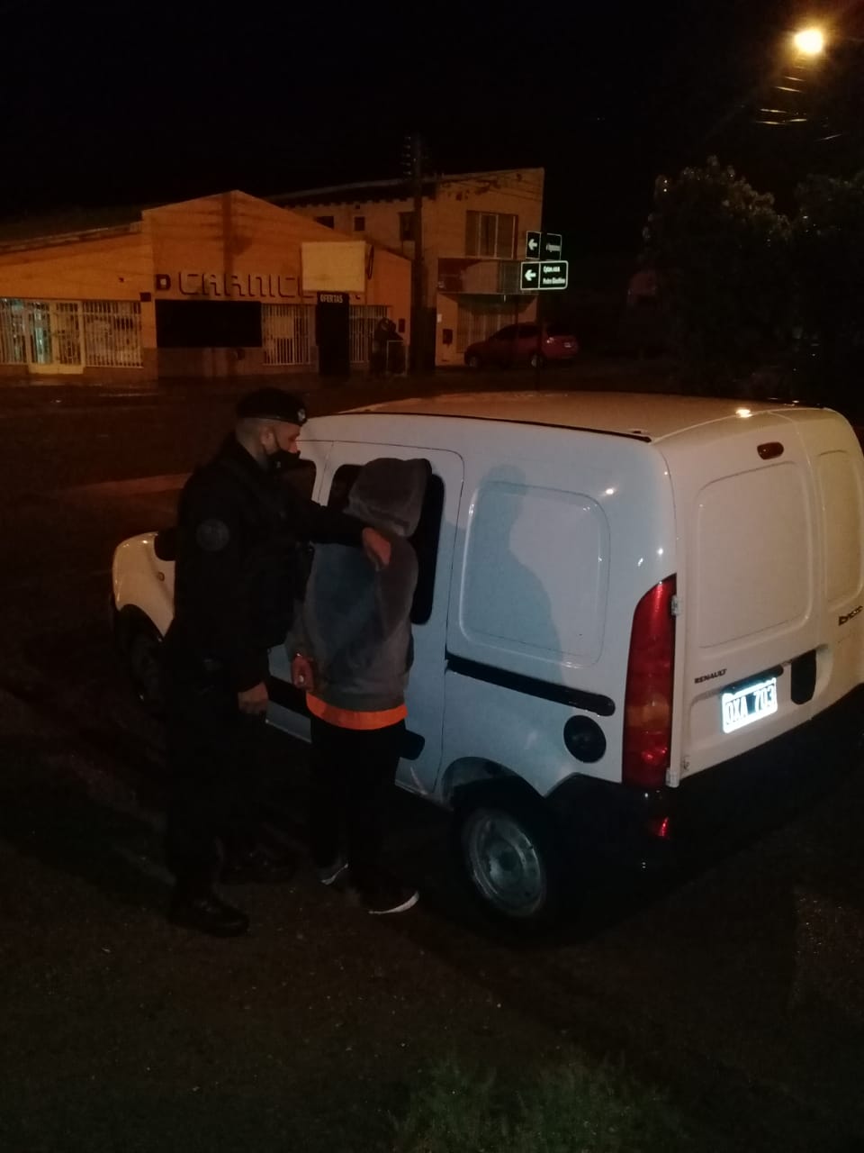 Igualmente la policía se interiorizó respecto del vehículo tratándose de una Renault Kangoo de color blanco.