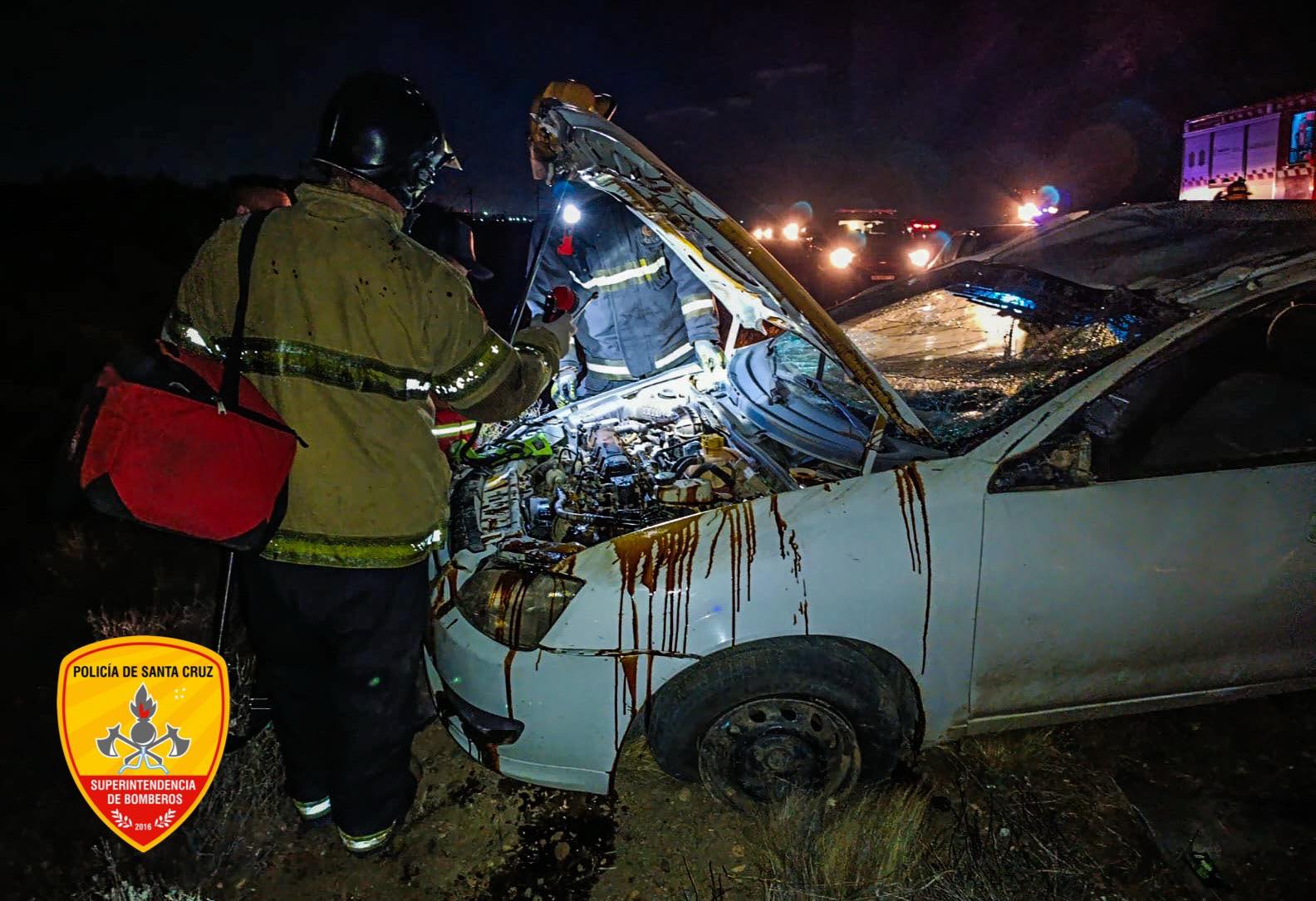 Durante la noche de ayer, personal de la División Cuartel 16° de Bomberos intervino en un siniestro vial registrado sobre la Ruta Provincial N° 12, en jurisdicción de Caleta Olivia, donde un vehículo de menor porte protagonizó un vuelco tras perder el control.