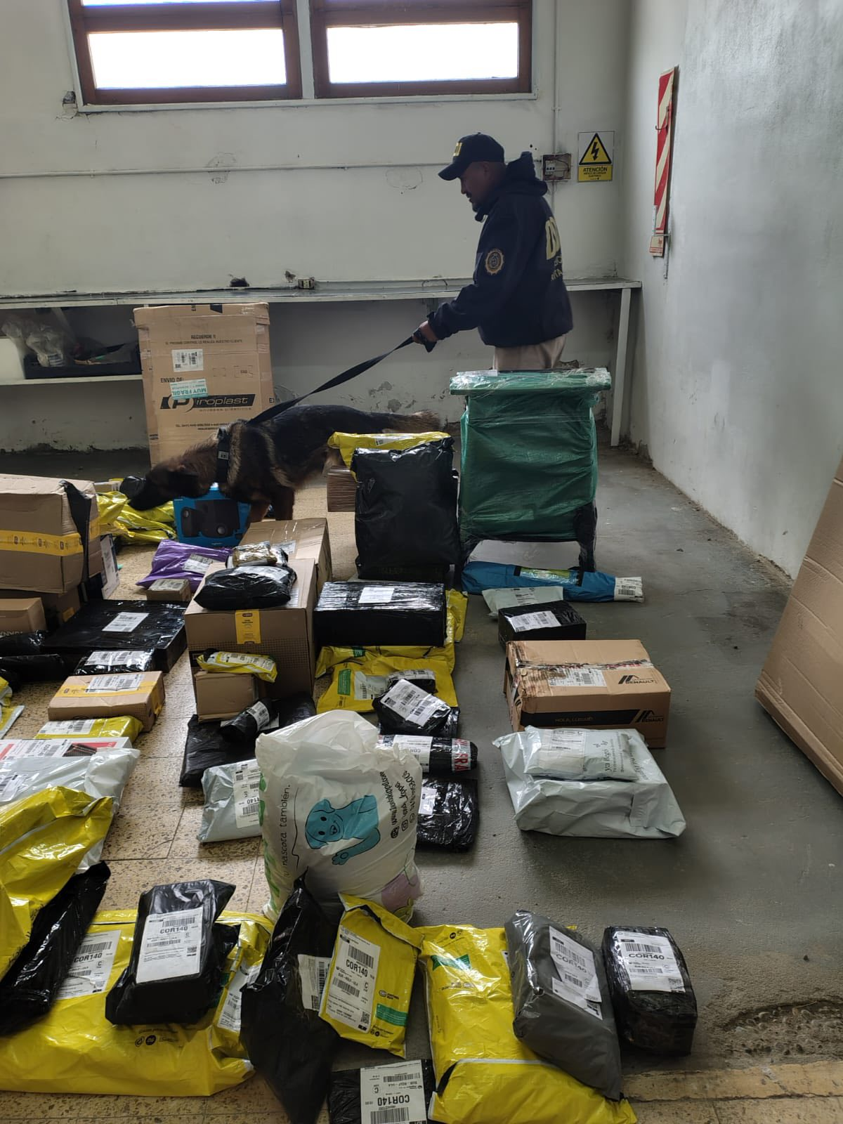 Durante el operativo se contó con la intervención del can detector de narcóticos “AIKA”, junto a sus guías especializados, quienes realizaron controles exhaustivos sobre bultos, paquetes y envíos, conforme a los protocolos vigentes.
