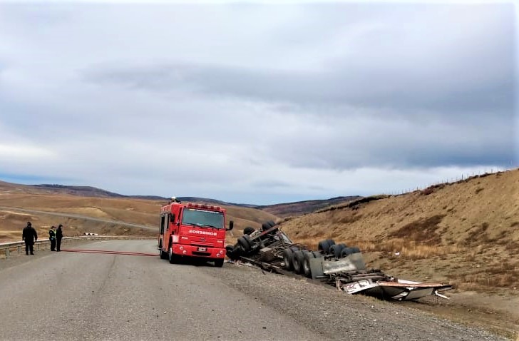 Cabe precisar que incidente vial se produjo a unos 15 Km. del paraje Julia Dufour en cercanías de la Estancia La Escondida, cuando el transporte estaba ingresando a la cuenca.