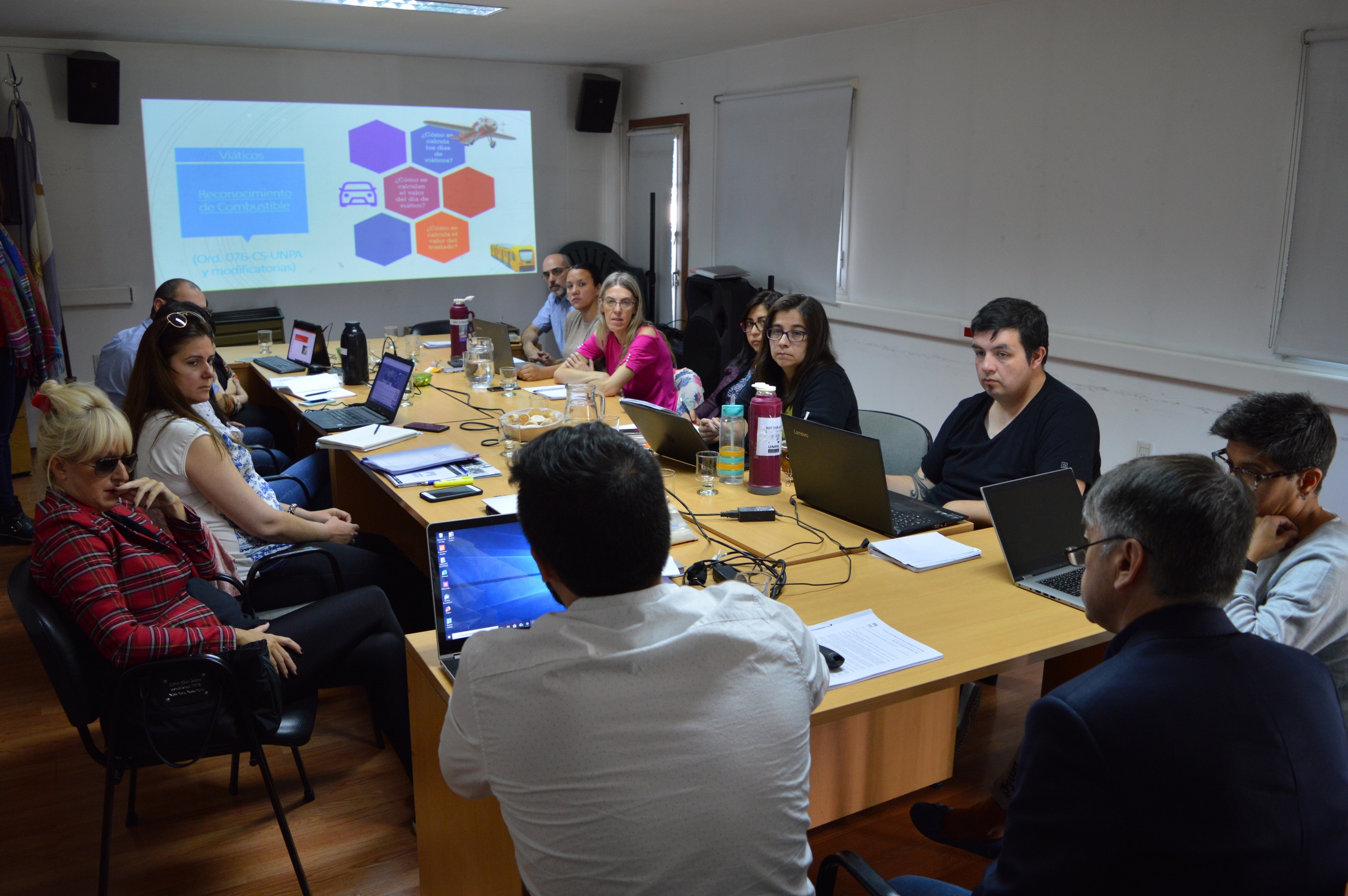 La reunión fue convocada por el secretario de Hacienda y Administración de la UNPA; Lic. Juan Manuel Acosta, quien -acompañado por el Rector Rojas y la Vicerrectora, Prof. Roxana Puebla- analizó junto al resto de los funcionarios las normativas y procedimientos que enmarcan las actividades y tareas que realizan las diferentes dependencias de Rectorado y confluyen en la SHA.