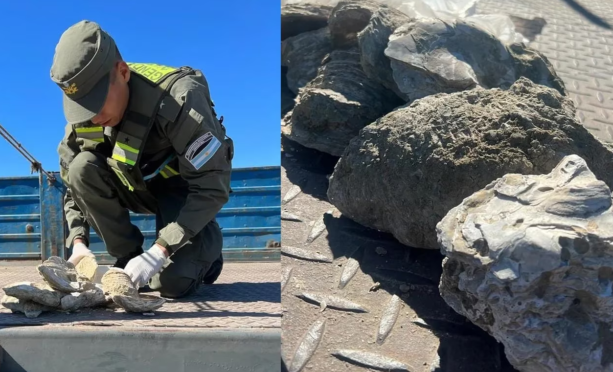 La Gendarmería Nacional Argentina (GNA) incautó ocho piezas de ostras fósiles de más de 12 millones de años en Chubut. Los ejemplares eran transportados dentro de una bolsa en un camión que había salido de Santa Cruz y se dirigía a la Ciudad Autónoma de Buenos Aires (CABA).