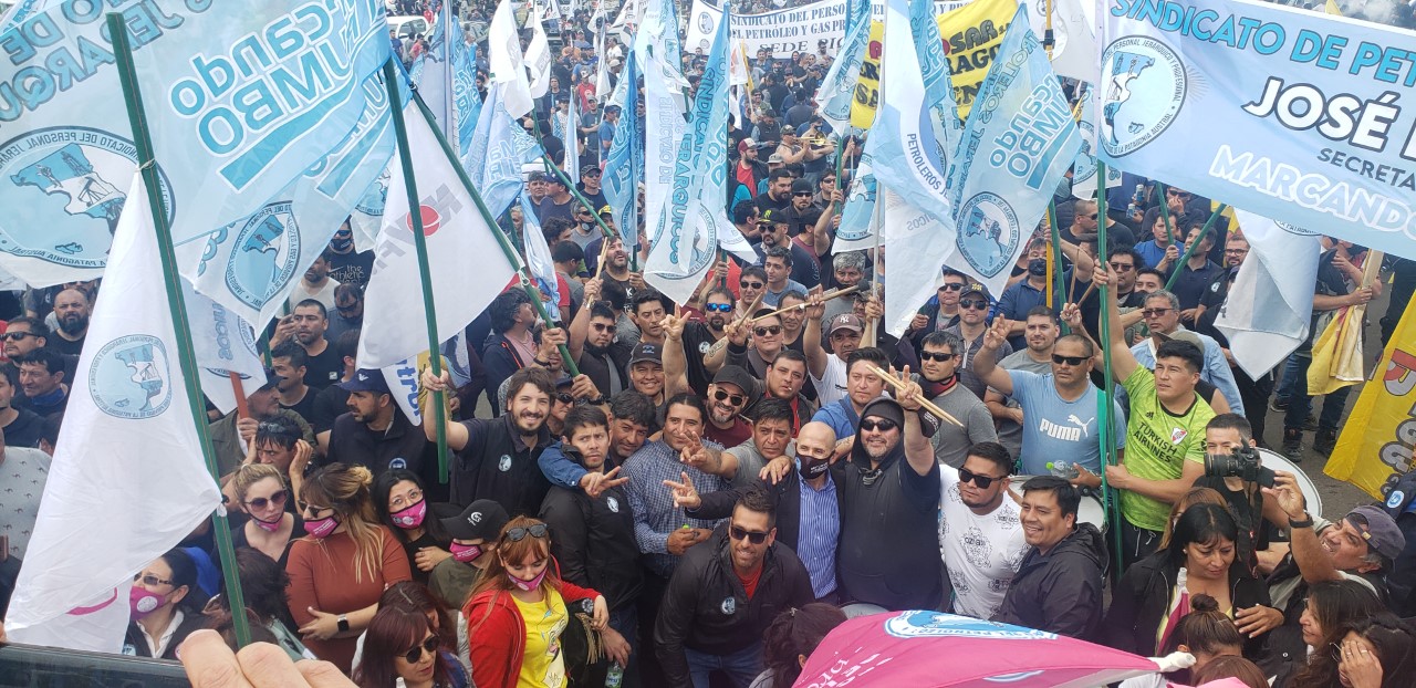 “Quiero agradecer a la gente de la provincia de Santa Cruz que vino a acompañar en este acto, Caleta Olivia, Pico Truncado y Las Heras, también a la gente de Río Gallegos, la de Río Grande en Tierra del Fuego que también se acercó, como la de Sarmiento aquí en Chubut, y por supuesto a la gente de Comodoro Rivadavia”, dijo el líder sindicalista en el comienzo de su discurso.
