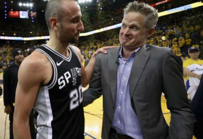 Una vez consumada la derrota de San Antonio Spurs ante Golden State, llegó el momento de los saludos entre los protagonistas y se dio un particular diálogo entre Steve Kerr, DT de los Warriros, y Manu Ginóbili.