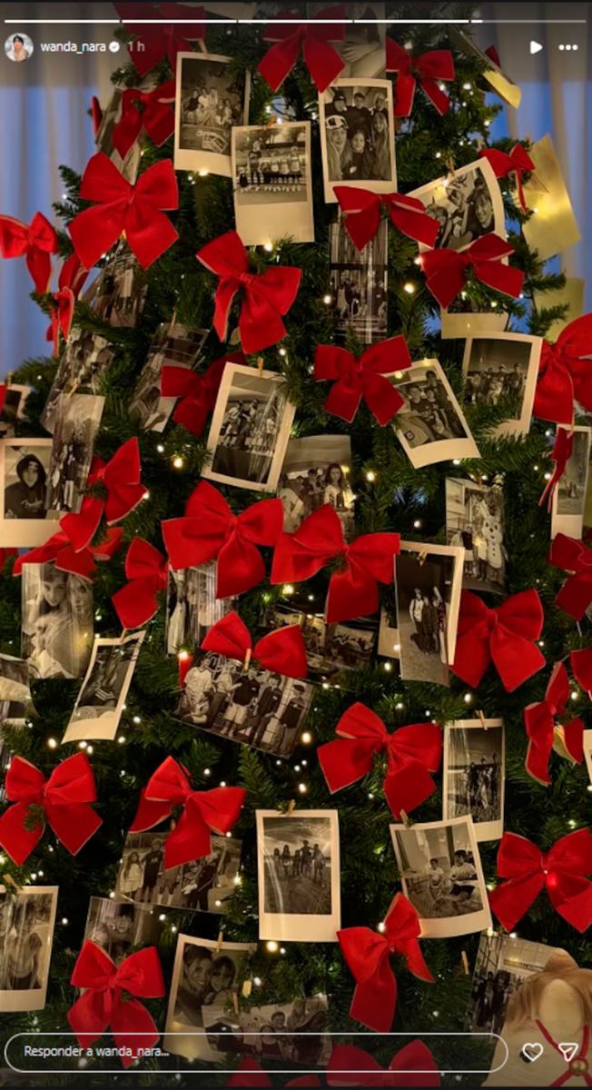 El detalle que no pasó inadvertido fue que el árbol más grande fue decorado con fotos familiares en las que aparecen ella, sus hijos —Valentino, Constantino, Benedicto, Francesca e Isabella— y Maxi López.