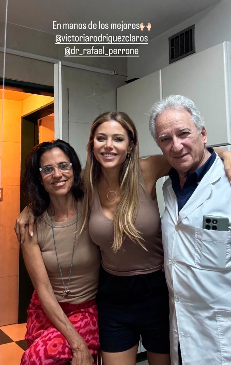 La modelo también compartió imágenes del momento previo a la intervención junto a su fonoaudióloga y el médico cirujano, a quienes agradeció públicamente. En una de las fotografías se la ve acompañada por ambos profesionales, destacando que estaba “en manos de los mejores”.