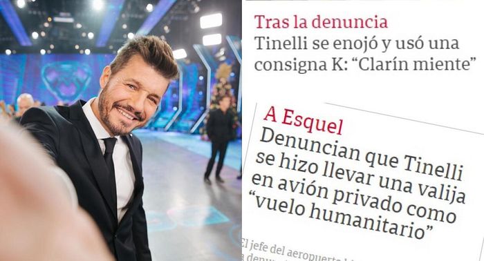 "Veo un hostigamiento sistemático de Clarín que me sorprende, porque es el diario donde trabajo a través de Canal 13. Dos veces me han tratado de pelotudo, en dos editoriales, con una falta de respeto absoluta", señaló. Respecto de la valija sospechosa, se manifestó enfático. "Acá no hubo un vuelo humanitario; es una mentira absoluta", dijo y aclaró que se trató de un taxi aéreo que él mismo pagó para hacerse llevar medicamentos desde Buenos Aires. Y ante la intencionada pregunta de si Clarín miente, Tinelli respondió sin vueltas: “Sí. Esta vez lo pongo yo".