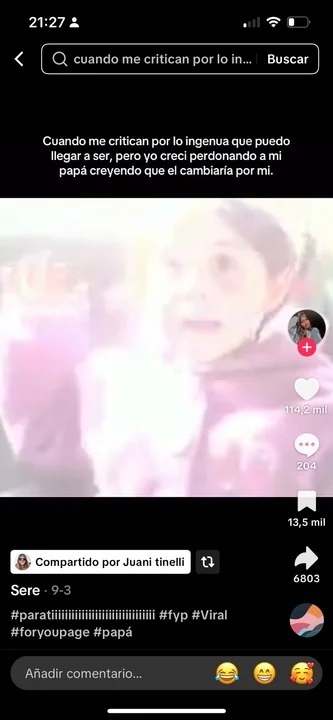 En otro posteo que difundió, hace referencia a problemas familiares no resueltos: “Cuando me critican por lo ingenua que puedo llegar a ser, pero yo crecí perdonando a mi papá creyendo que él cambiaria por mí”.