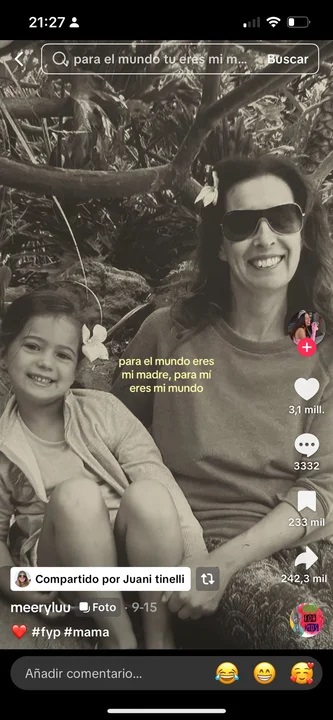 En paralelo a su enojo con su padre, destacó el gran apoyo que recibe de parte de su madre: “Para el mundo eres mi madre, para mí eres mi mundo”.