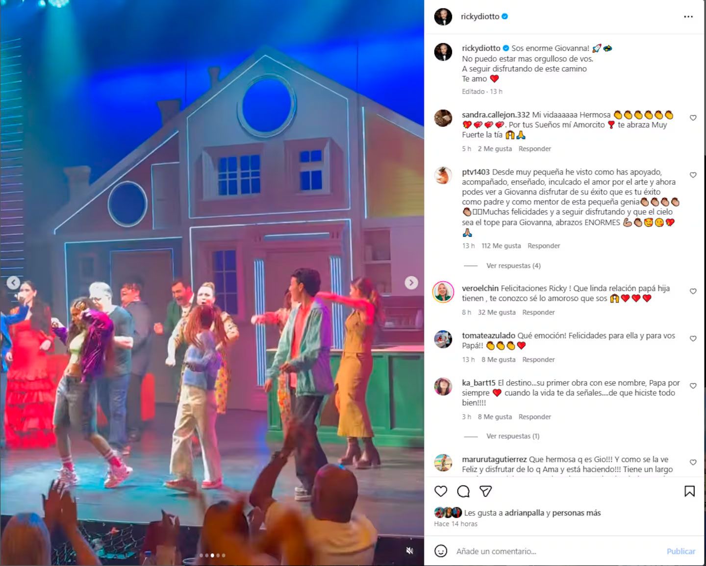 Giovanna, la hija de María Fernanda Callejón y Ricky Diotto, debutó en el teatro y sus papás se mostraron muy orgullosos.