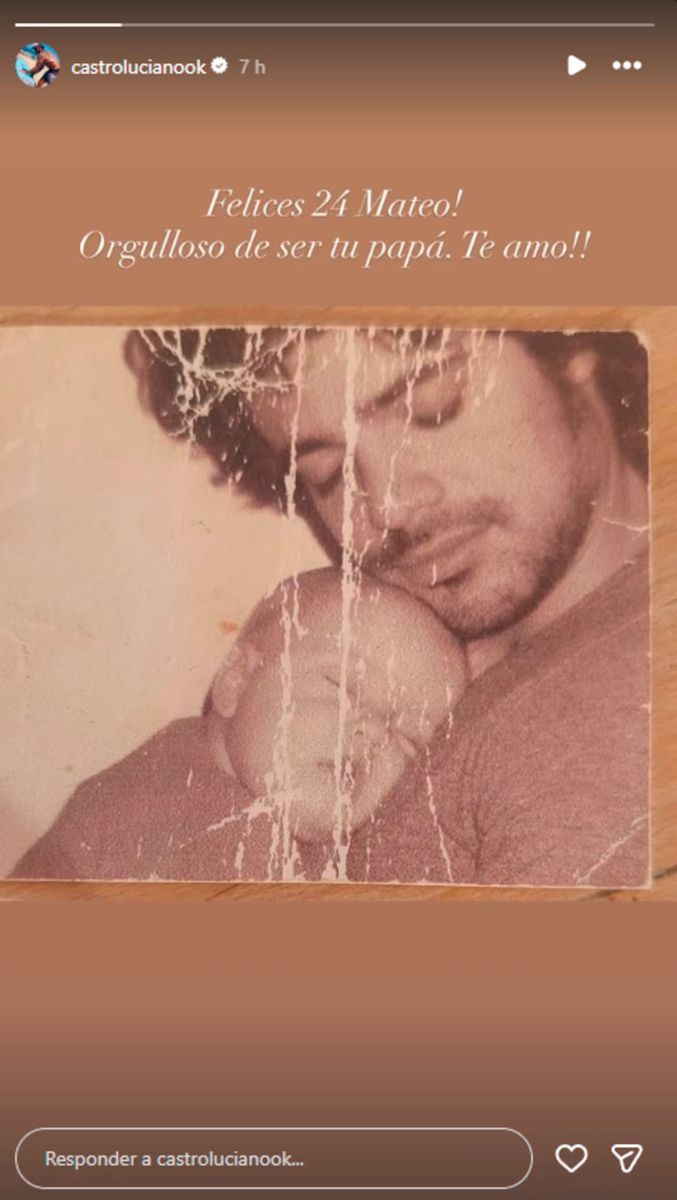 En sus historias de Instagram, el actor publicó una foto retro donde se lo veía sosteniendo en brazos a su hijo recién nacido. “Felices 24, Mateo. Orgulloso de ser tu papá. Te amo”, escribió.