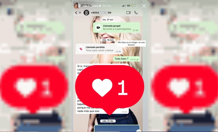 En la primera imagen que difundió, se puede ver una llamada perdida al mediodía del 19 de noviembre, donde expuso: “Mis hijas en el colegio en este horario”, dando a entender que se trataba de un intento de comunicación con ella.