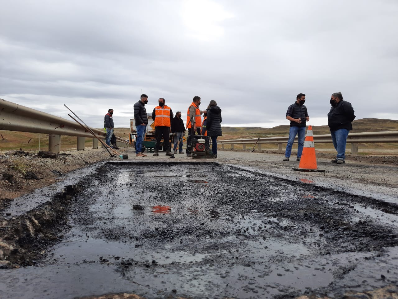Se trata de tareas de bacheo en la Ruta 40, en el tramo comprendido entre Río Turbio y La Esperanza. Las mismas están siendo ejecutadas con un nuevo material de asfalto en frío generado en el laboratorio de Vialidad Provincial.