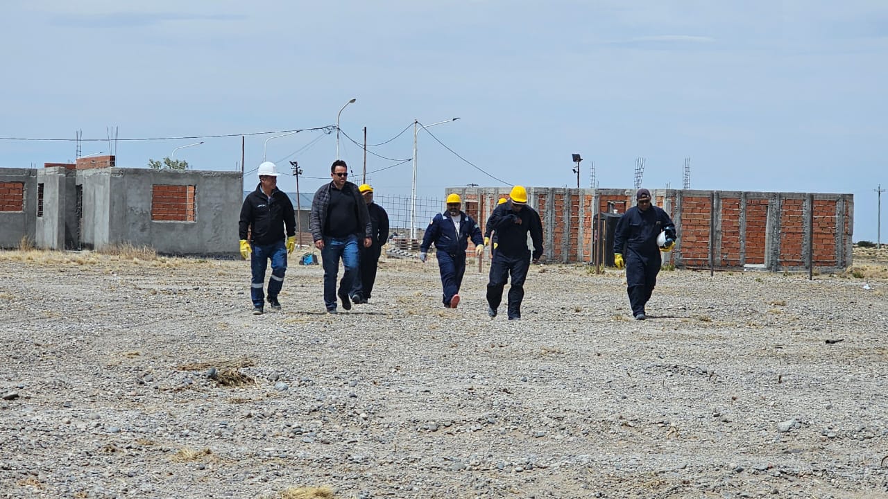 En esta jornada, el presidente del Instituto de Desarrollo Urbano y Vivienda (IDUV), Marcelo De La Torre, el presidente de la Comisión de Fomento de Koluel Kayke, Tomás Cabral e integrantes de su equipo de trabajo, recorrieron la Manzana 23A, predio donde se puso en marcha la obra que permitirá cumplir el sueño de la casa propia de seis familias de la localidad de Koluel Kayke.