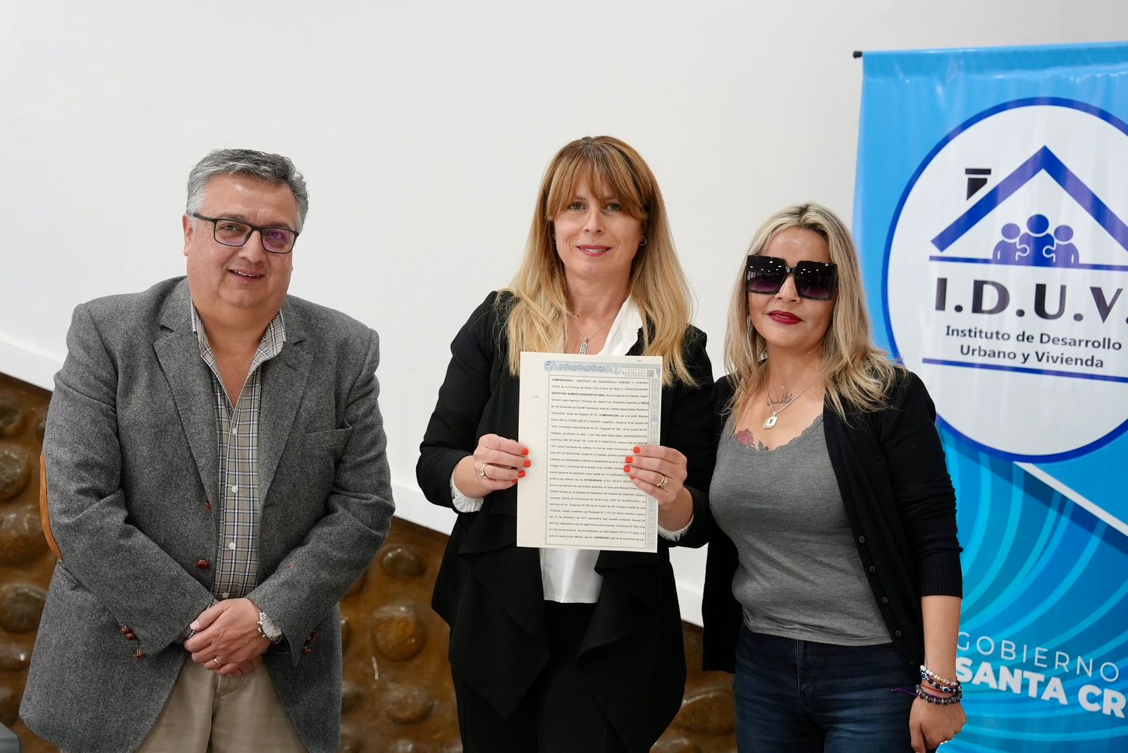 El Gobierno de Santa Cruz, a través del Instituto de Desarrollo Urbano y Vivienda (IDUV), realizó este miércoles en la localidad de El Calafate, el acto de firma de escrituraciones de viviendas y cancelación de hipotecas, con el objetivo de que más familias puedan obtener su título de propiedad.