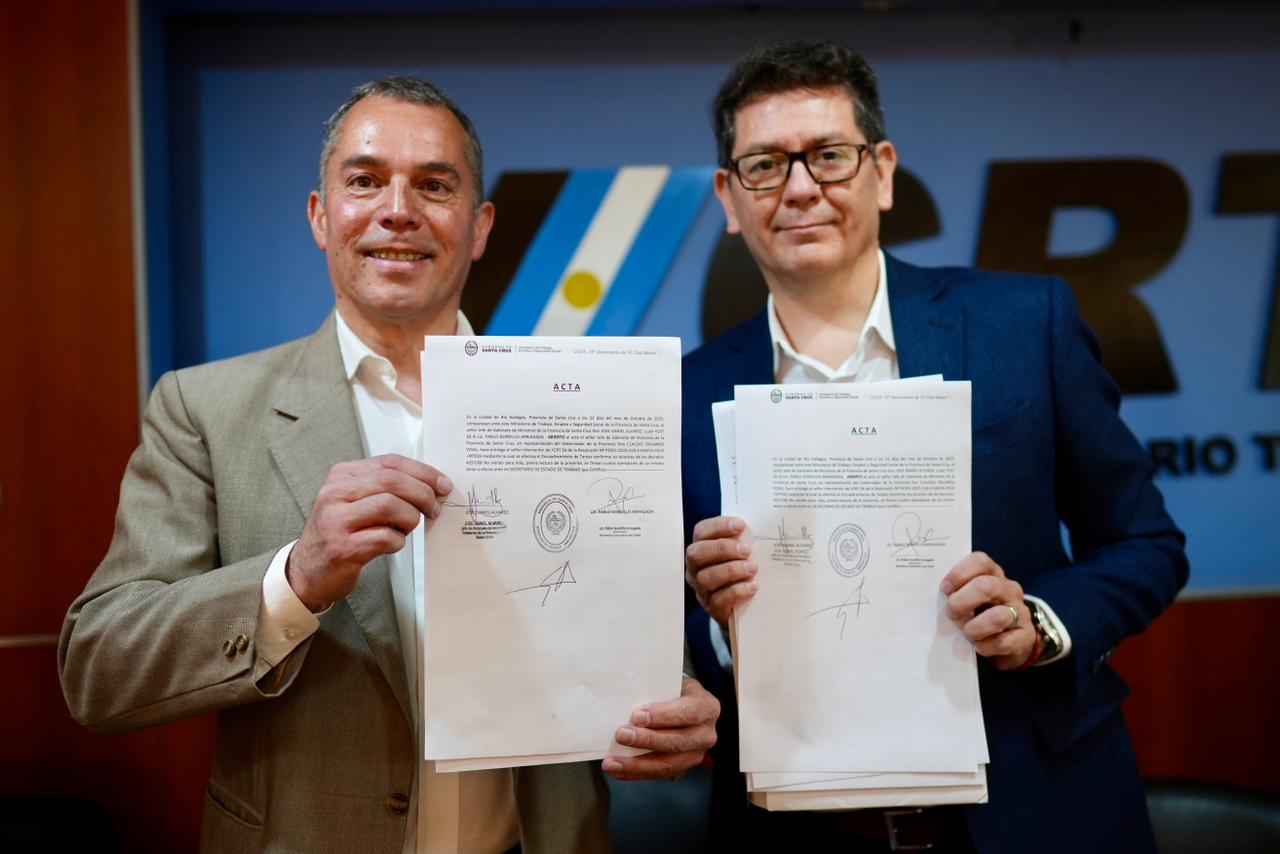 El jefe de Gabinete, Daniel Álvarez, participó este 21 de octubre en Río Turbio del anuncio del nuevo régimen previsional para el personal de Planta Depuradora, impulsado por YCRT y el Ministerio de Trabajo para reconocer las condiciones particulares de su labor.