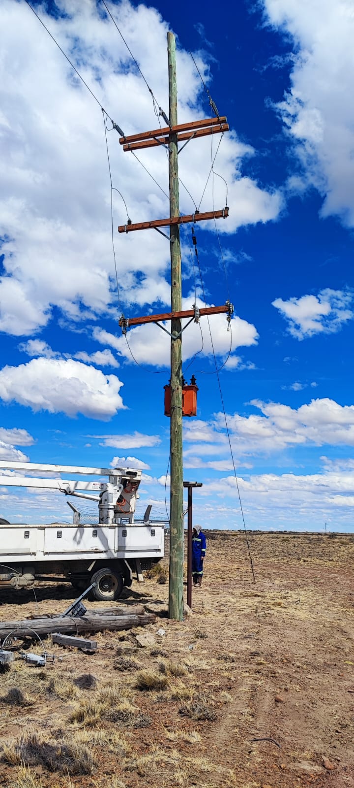 Servicios Públicos Sociedad del Estado (SPSE) llevó adelante importantes tareas de reparación en Cañadón Quintar, donde se intervino la línea de media tensión y se concretó el armado de la Subestación Transformadora Aérea (SETA), que abastece de energía al pozo de captación de agua de la localidad.