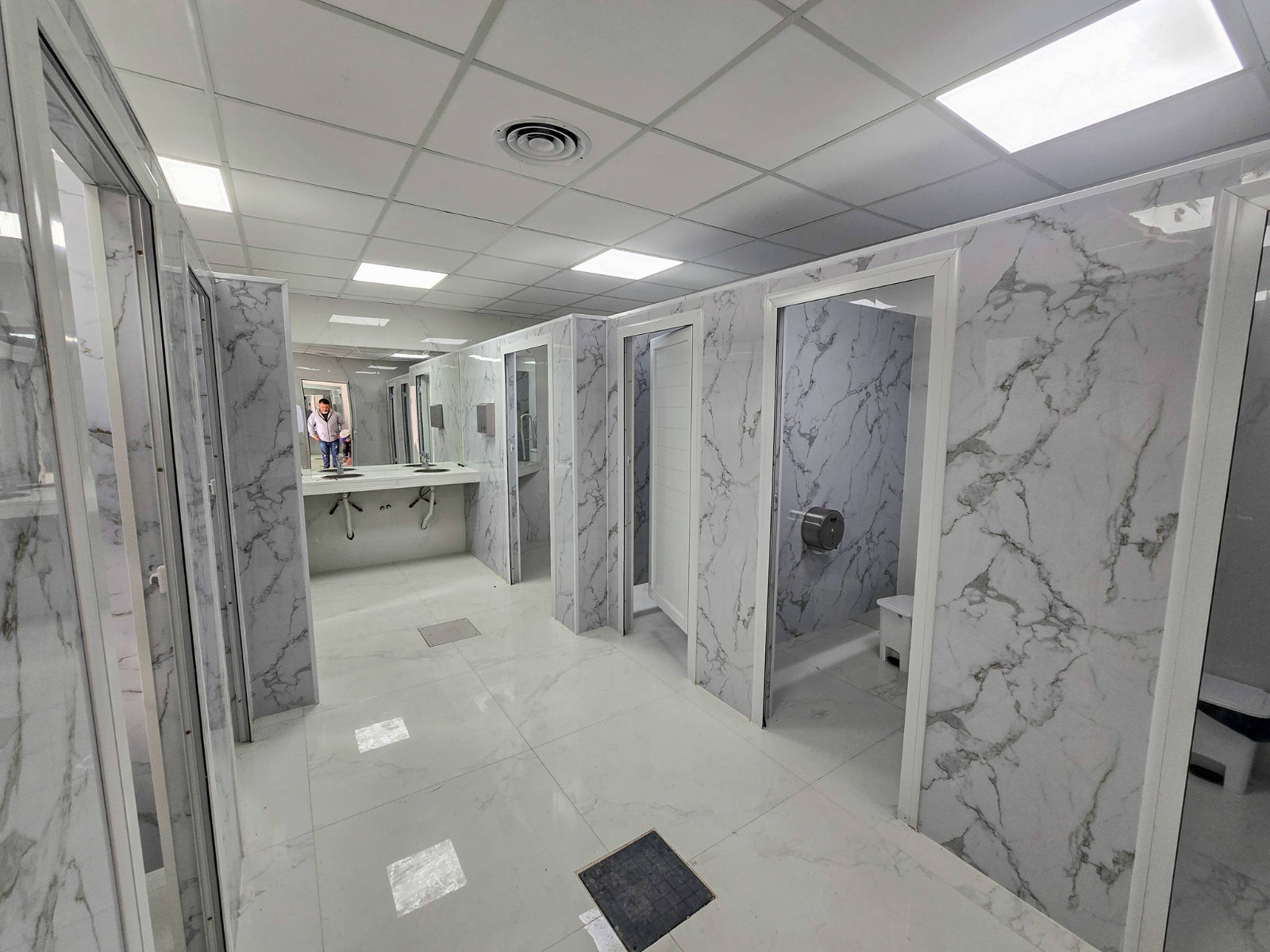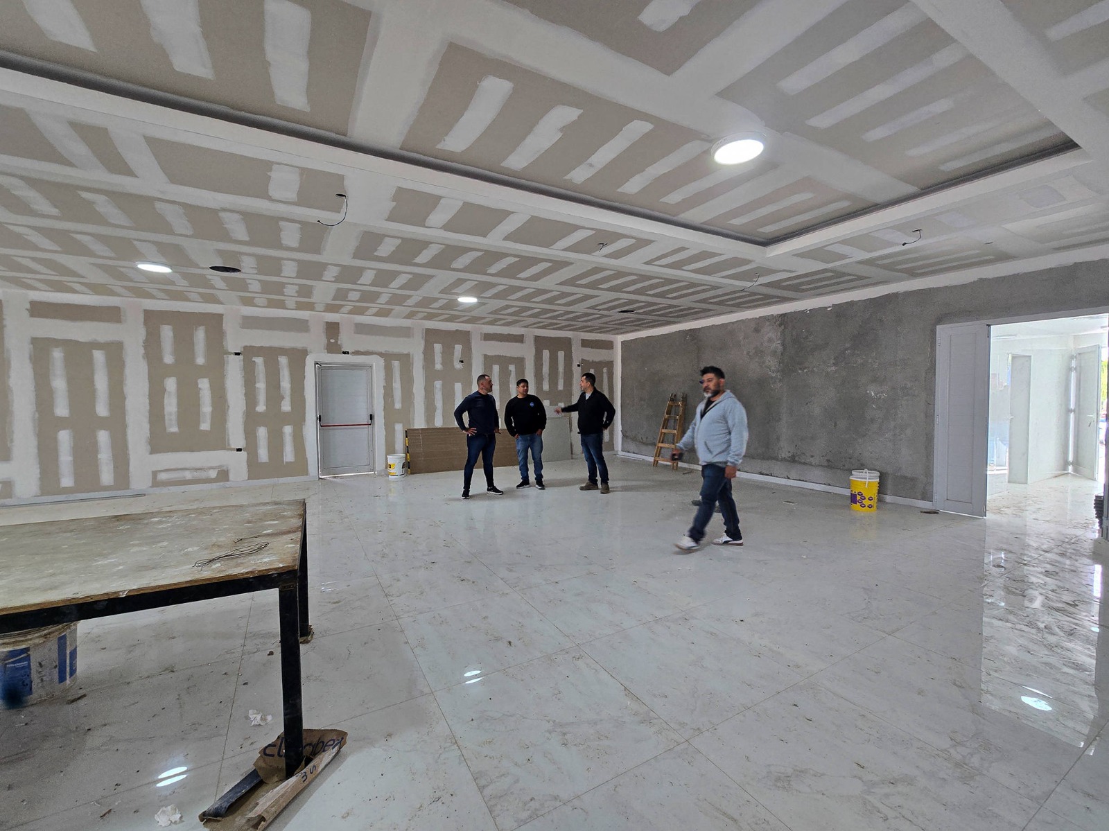 En cuanto al salón de eventos, se detalló que los baños se encuentran finalizados al 100% y que el salón principal transita las instancias finales de acabados y masillado. Los trabajos restantes se concentran actualmente en el sector de cocina.