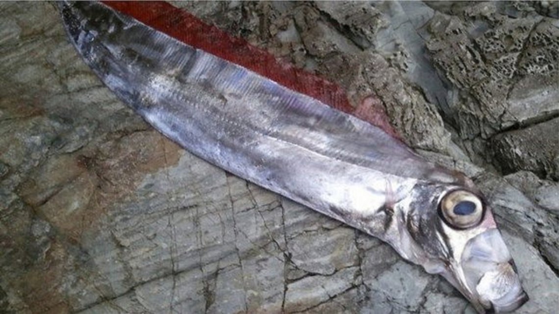 La especie, que se caracteriza por tener el cuerpo plateado y aletas rojas, es conocido en Japón como el "Mensajero del Palacio del Dios del Mar" y una leyenda nipona cuenta que cuando esta especie sale a la costa es porque habrá un fuerte terremoto que provocaría un tsunami.
