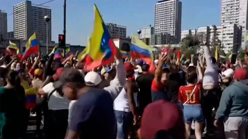 ?Luego del anuncio de la captura de Nicolás Maduro grandes celebraciones de venezolanos en las calles Santiago de Chile, con gritos, bocinazos y banderas del país. pic.twitter.com/Q0qPXtoth5