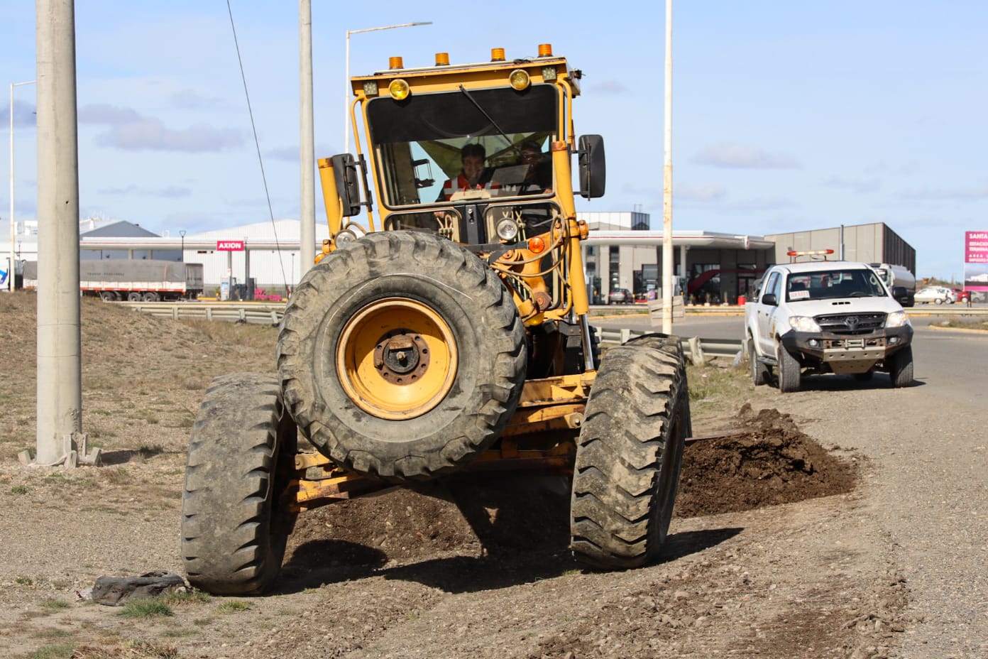 Durante la jornada, el presidente de la Administración, Julio Bujer, se hizo presente en el lugar junto al jefe del Distrito Vial Río Gallegos, Roberto Antipa, para supervisar el avance de las tareas y dialogar con el personal vial.